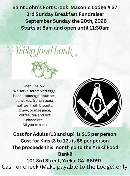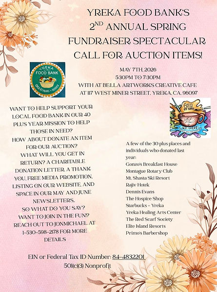 20% OF ALL FOOD AND ART SALES MADE DURING THIS TIME WILL BE DONATED TO THE YREKA FOOD BANK